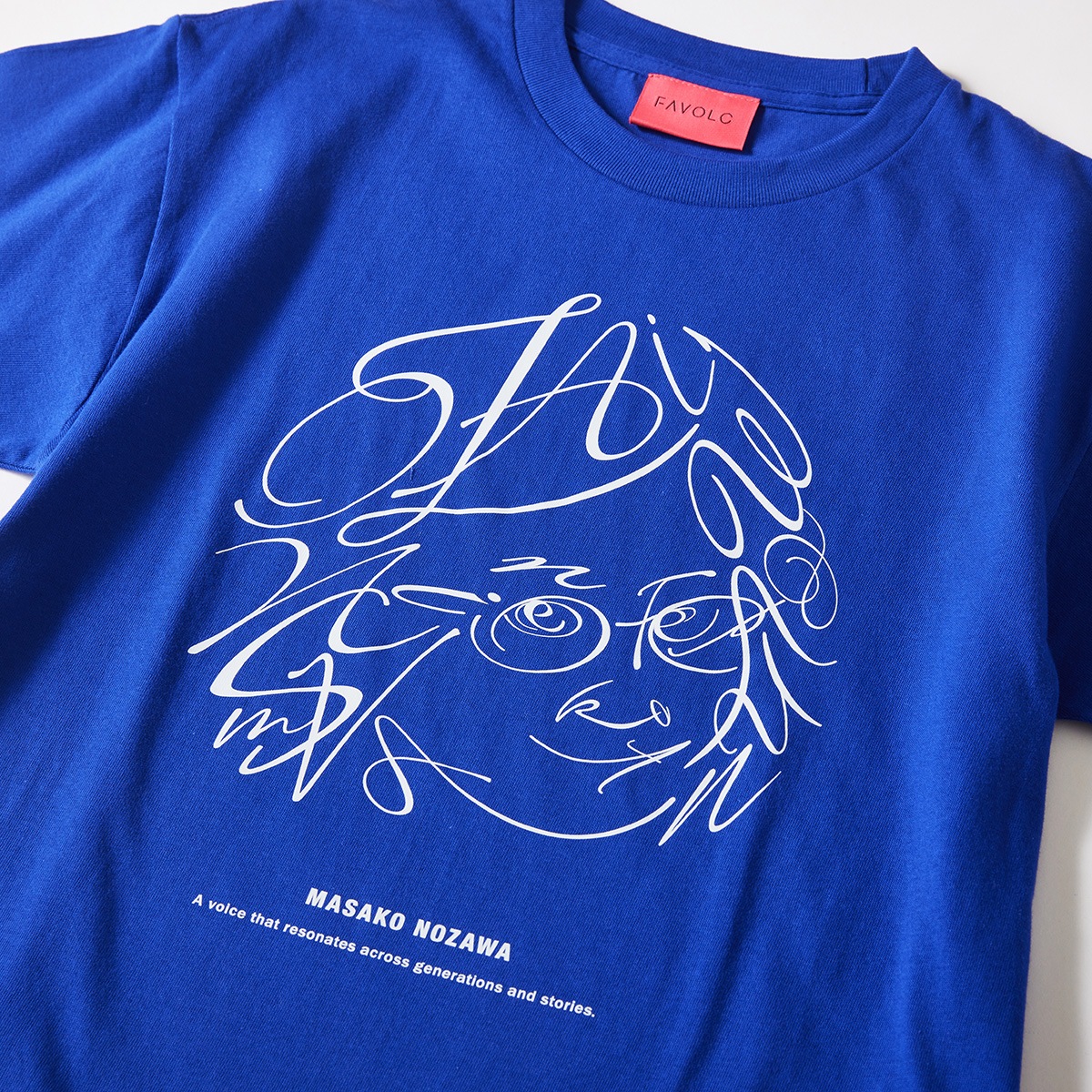 「NOZAWA MASAKO」と「Freedom」の文字で、野沢雅子の顔を描いたタイポグラフィデザインのTシャツ。
